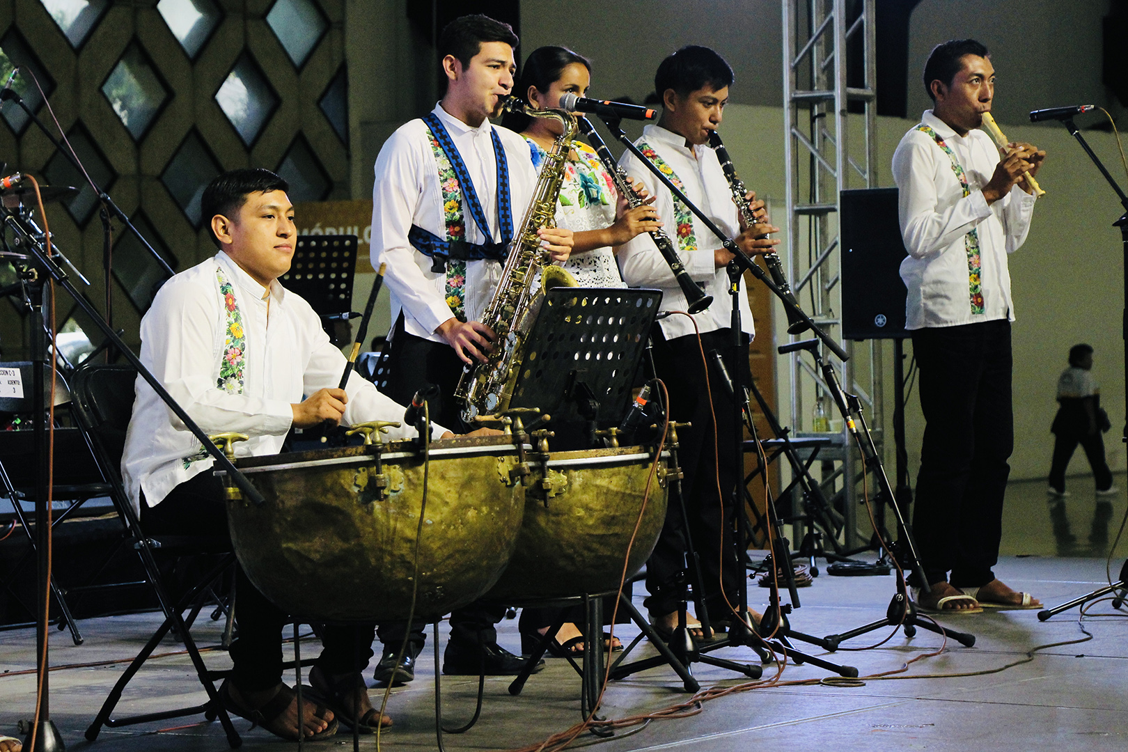Miguel Covarrubias, clarinete | Todor Ivanov, trombón | Iván Siliceo, tuba | Mafer Chí, batería Intérpretes del Taller Inicial II y III del Área de Danza Contemporánea de Yucatán